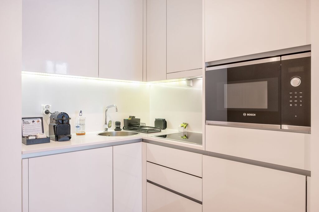 Duplex · Suite with Queen Size bed on the top floor · Bathroom with shower · Fully equipped kitchenette · Free Wi-Fi Internet access · Dining area · Living area · Air Conditioning · Room temperature control · Iron and ironing board · Wardrobe · Pool towels · Cable TV · Bluetooth Speaker · Espresso machine · Complimentary water, tea and coffee · Personal hygiene products · Hairdryer · Street view · In-room safe · Elevator · First aid kit aid · Apartment area – 67 m²