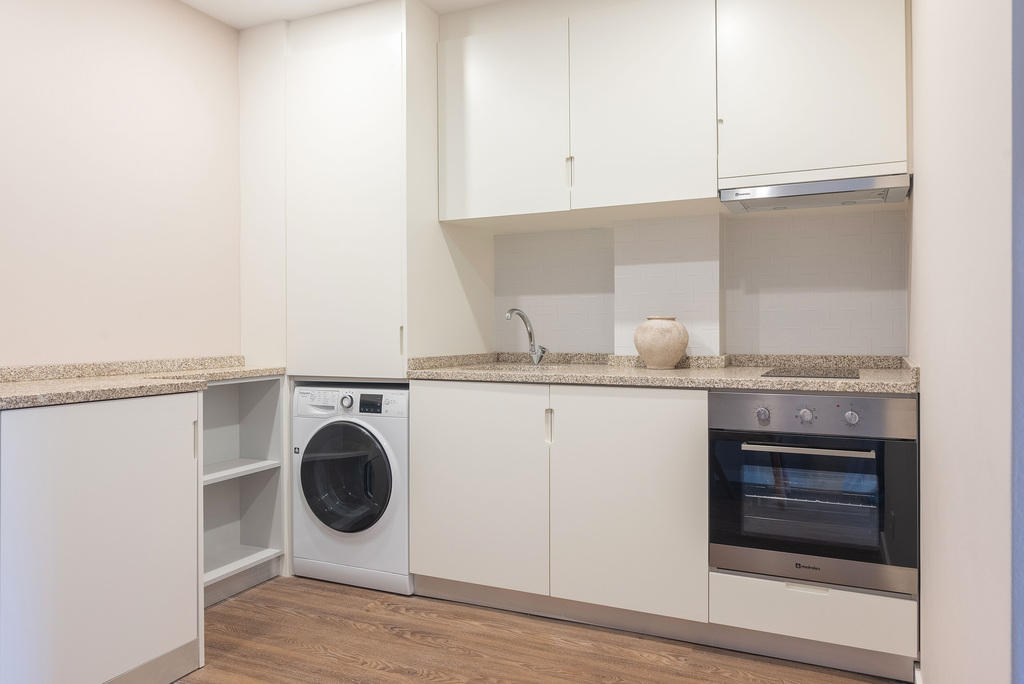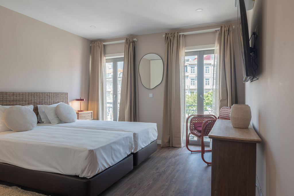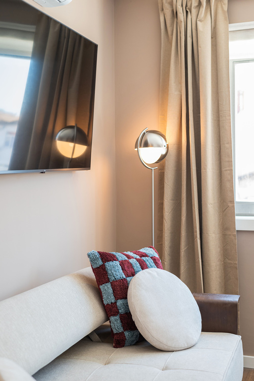 No segundo andar do mesmo edifício reabilitado em 2025, este estúdio beneficia de uma localização privilegiada numa praça dinâmica durante o dia, que recupera a tranquilidade a partir das 23h. A decoração em tons pastel e o mobiliário contemporâneo criam um ambiente suave e funcional. Inclui kitchenette completa, duas camas Twin de 90 cm que podem ser unidas em cama de casal com topper, bem como uma casa de banho generosa com duche amplo. Os vidros acústicos reduzem eficazmente o ruído exterior. Área: 33 m².